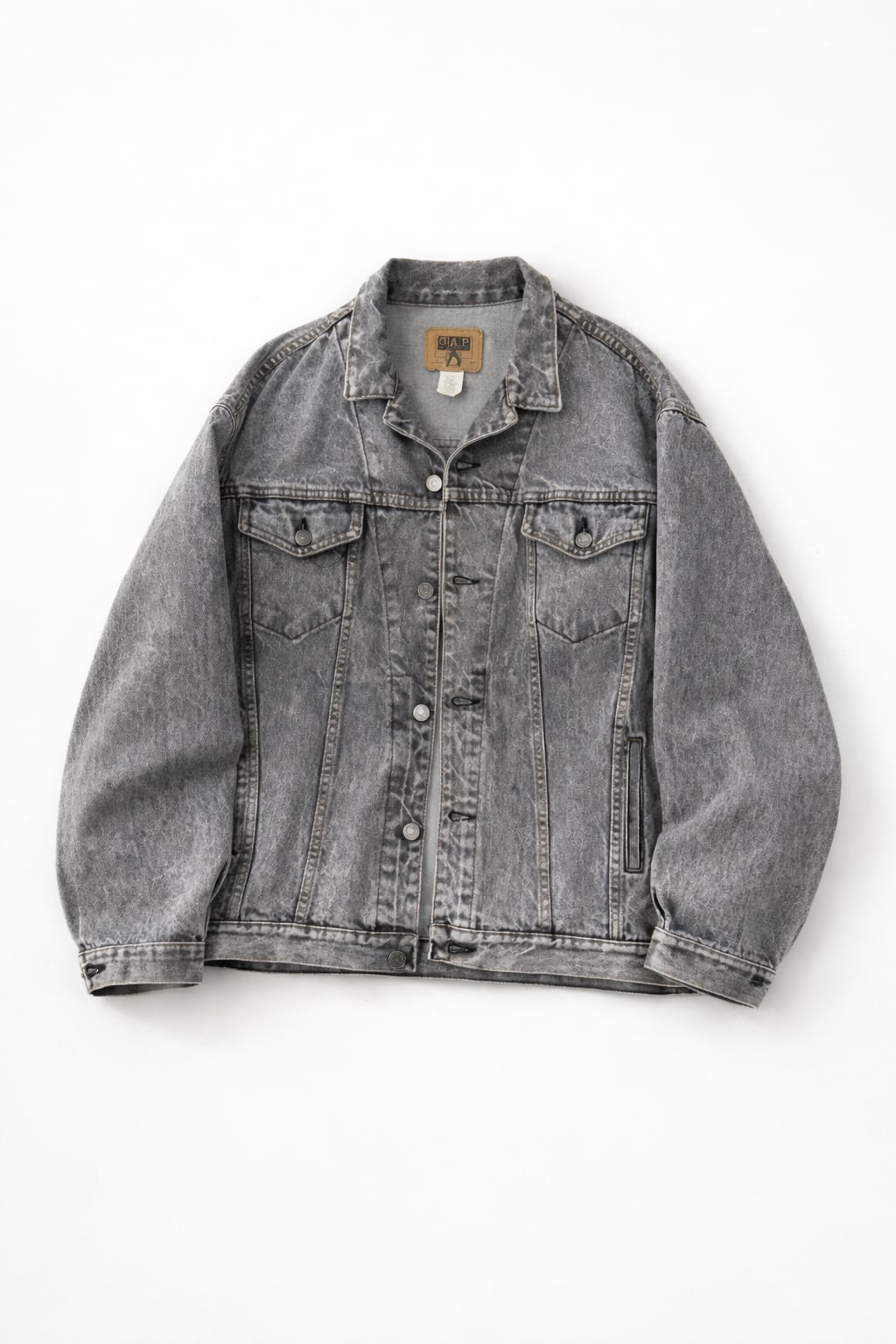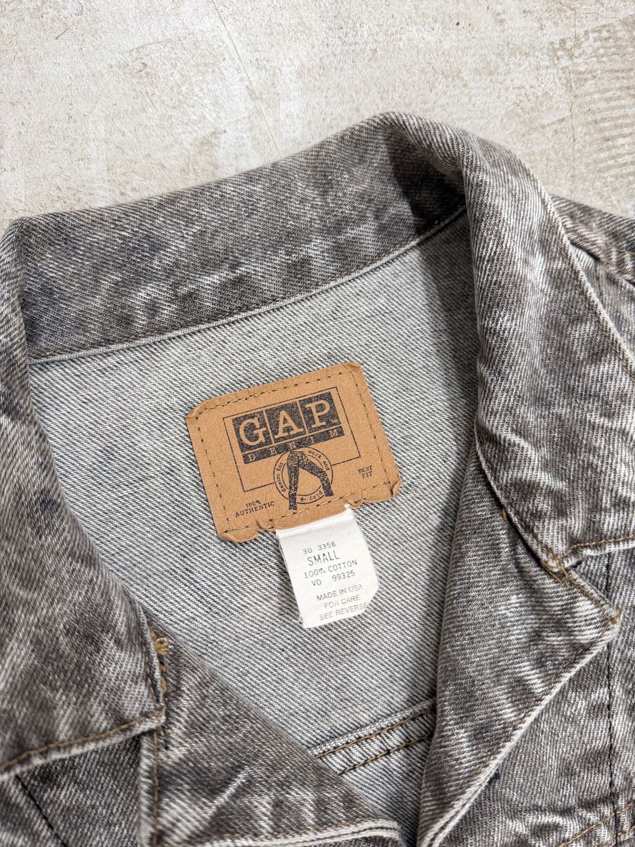 GAP のデニムジャケットなんだけど、いわゆる王道のトラッカージャケットをベースにしつつ、このフェード感で一気に今っぽく仕上がってる。