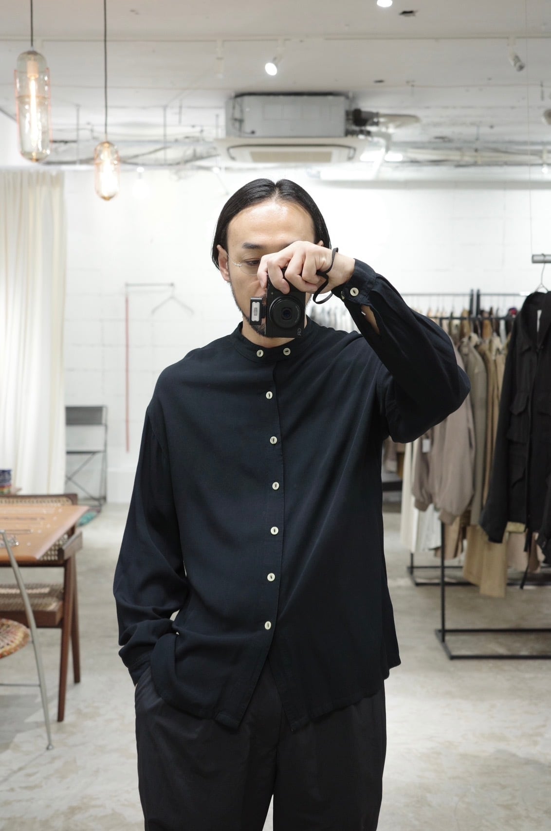VISCOSE BAND COLLAR SHIRT