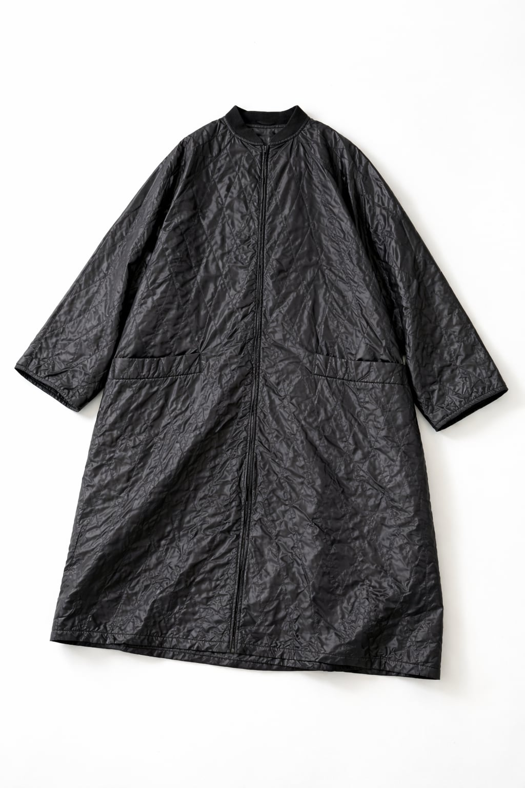 • Fabric: 繊細な光沢を放つ超軽量のナイロン素材を採用。キルティング加工を施すことで、独特のシワ感と陰影が生まれ、ブラック一色ながら奥行きのある表情に仕上がっています。
